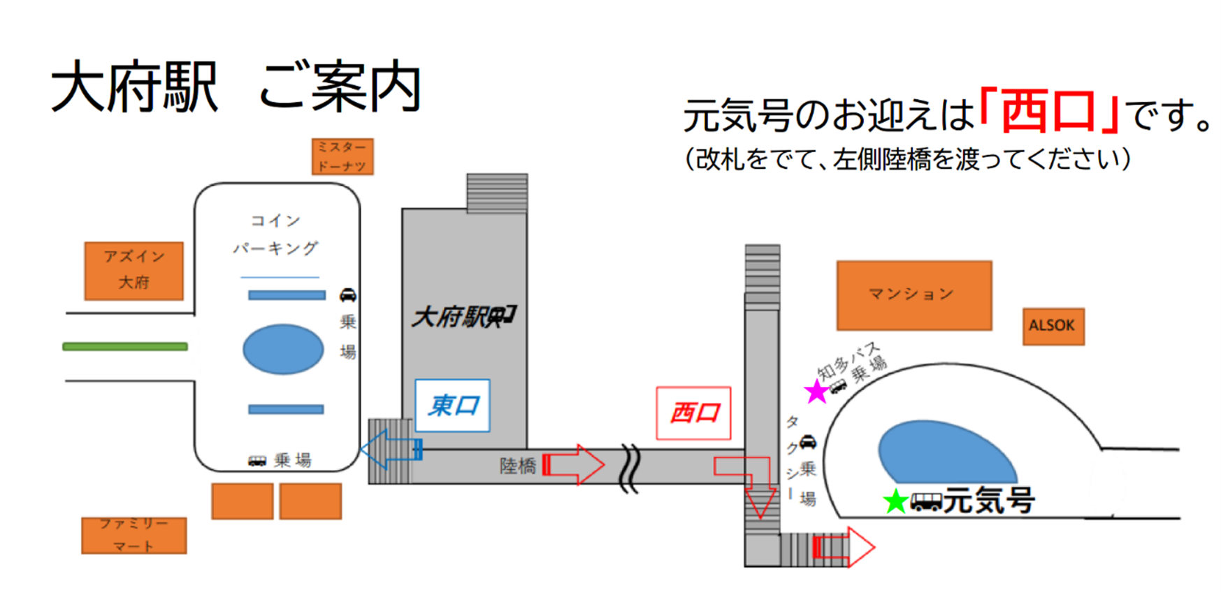 - JR 大府駅の改札をでて,左側陸橋を渡ったロータリーにて乗車。